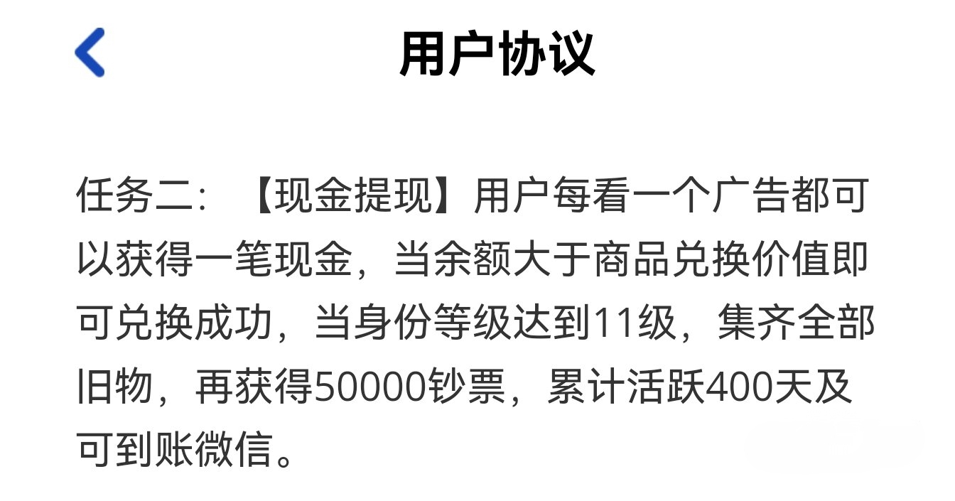 也许你会想,红包是小钱,那些标注着几百元现金的任务奖励才是大头吧。可惜,这又是精心设计的套路。比如,完成25个主线任务奖励300元现金的宣传看起来很诱人。但当你真正耗费精力完成这些前置条件后,会发现游戏还会不断追加新的要求。任务清单仿佛永远列不完,甚至苛刻到要求你连续登录游戏超过一年。特别要注意的是,官方文案里用的是“及可到账”而非“即可”,这个文字游戏玩得非常巧妙,为的就是在你达成所有已知条件后,还能名正言顺地塞进新的障碍。